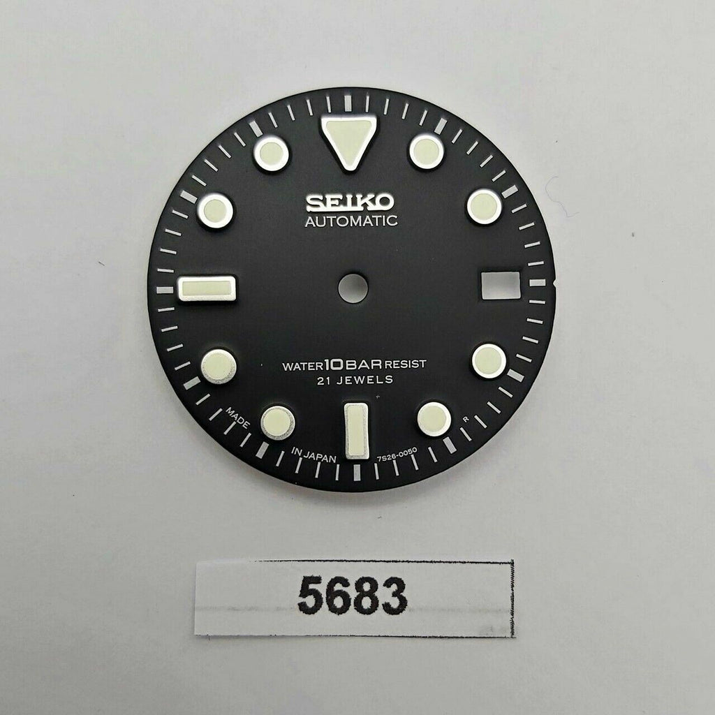 MOD SEIKO DIAL FOR 7S26 0050 10 BAR DIVERS WATCH BLACK DATE ONLY LUMES BVT5683