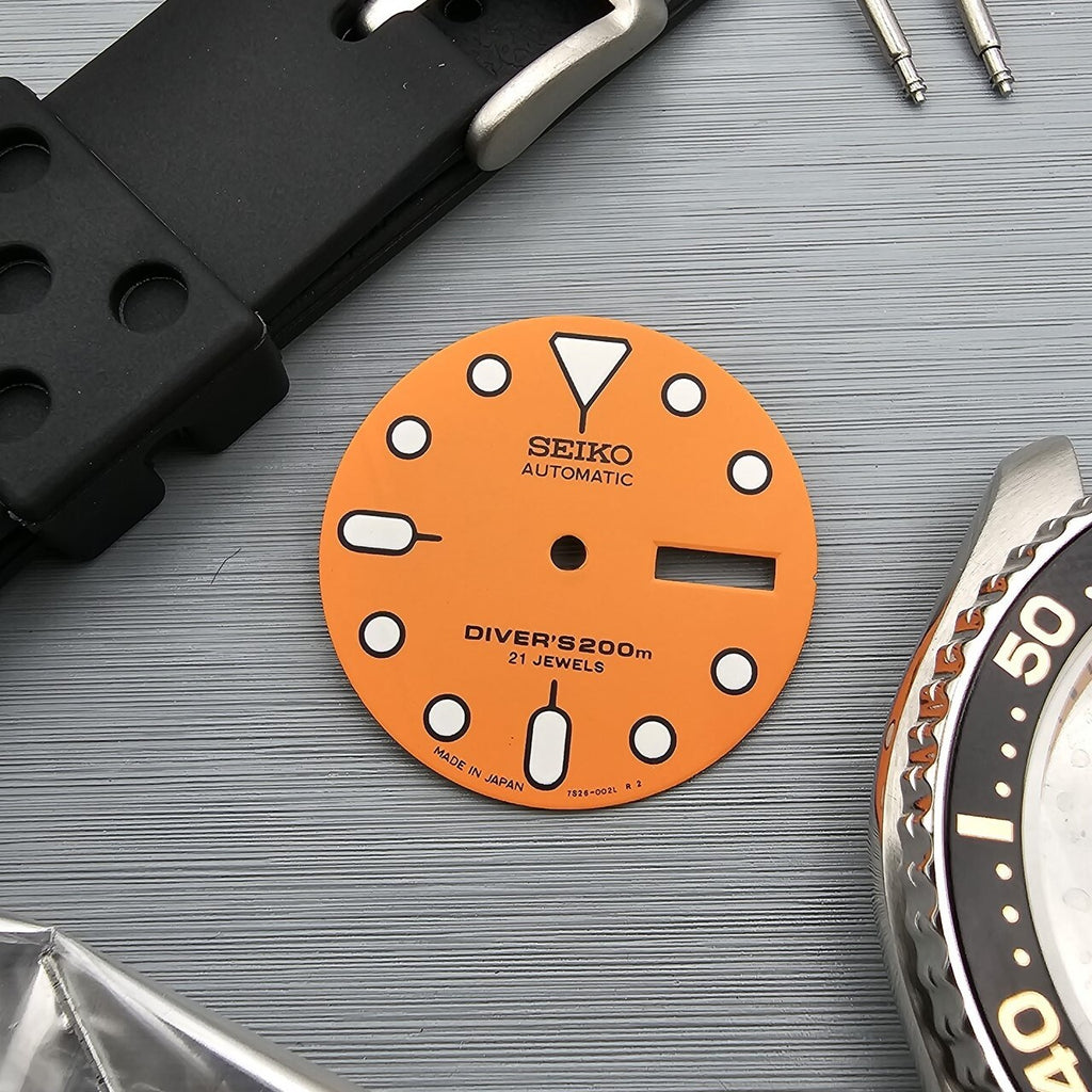 NEW AF SEIKO 7S26 0020 SKX007 ORANGE BLACK KIT CASE BEZEL GLASS CROWN DIAL HANDS