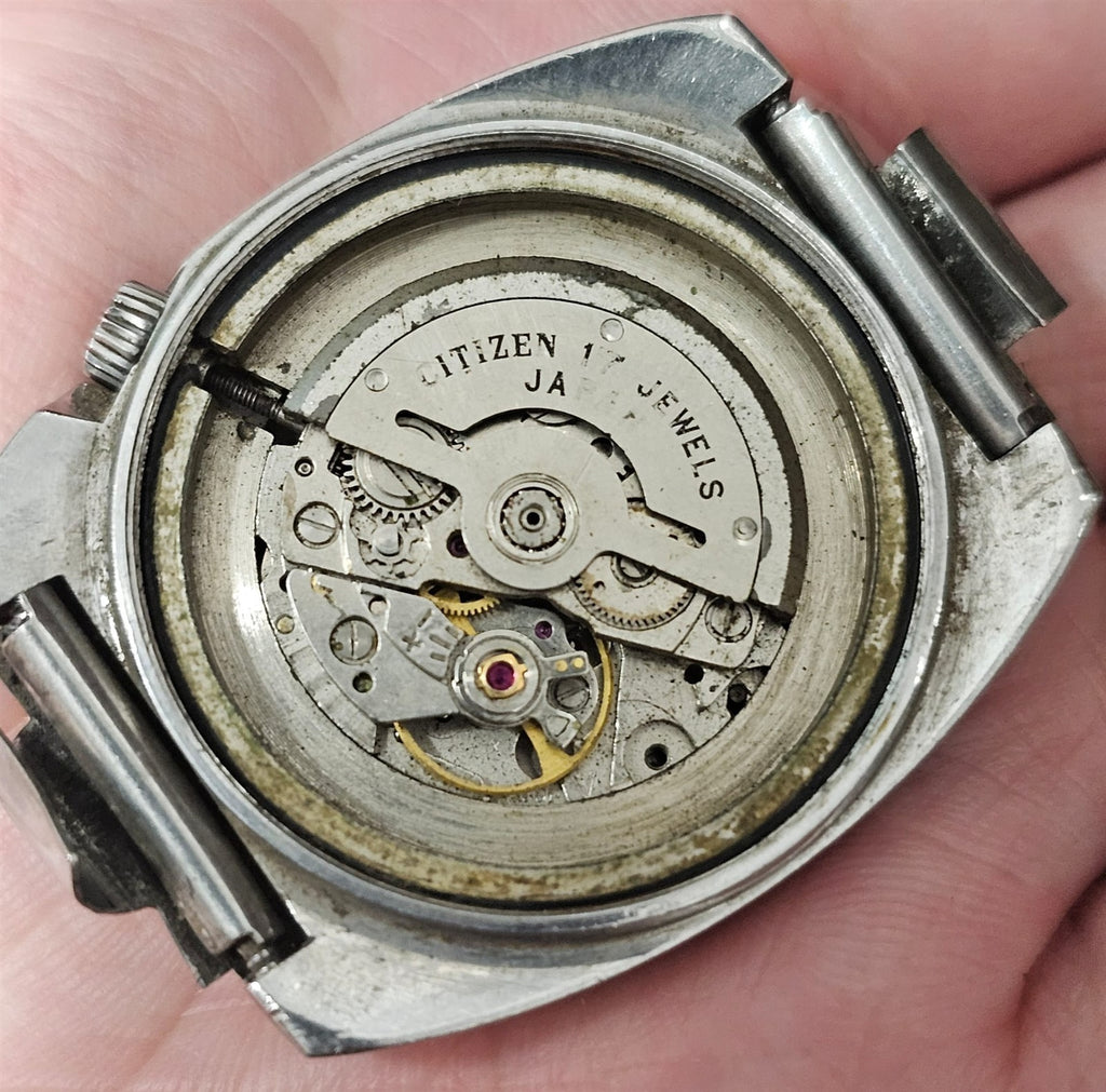 PROJECT TO FIX CITIZEN CUSHION SHAPED AUTOMATIC HOODED STEEL DATE WATCH 9432